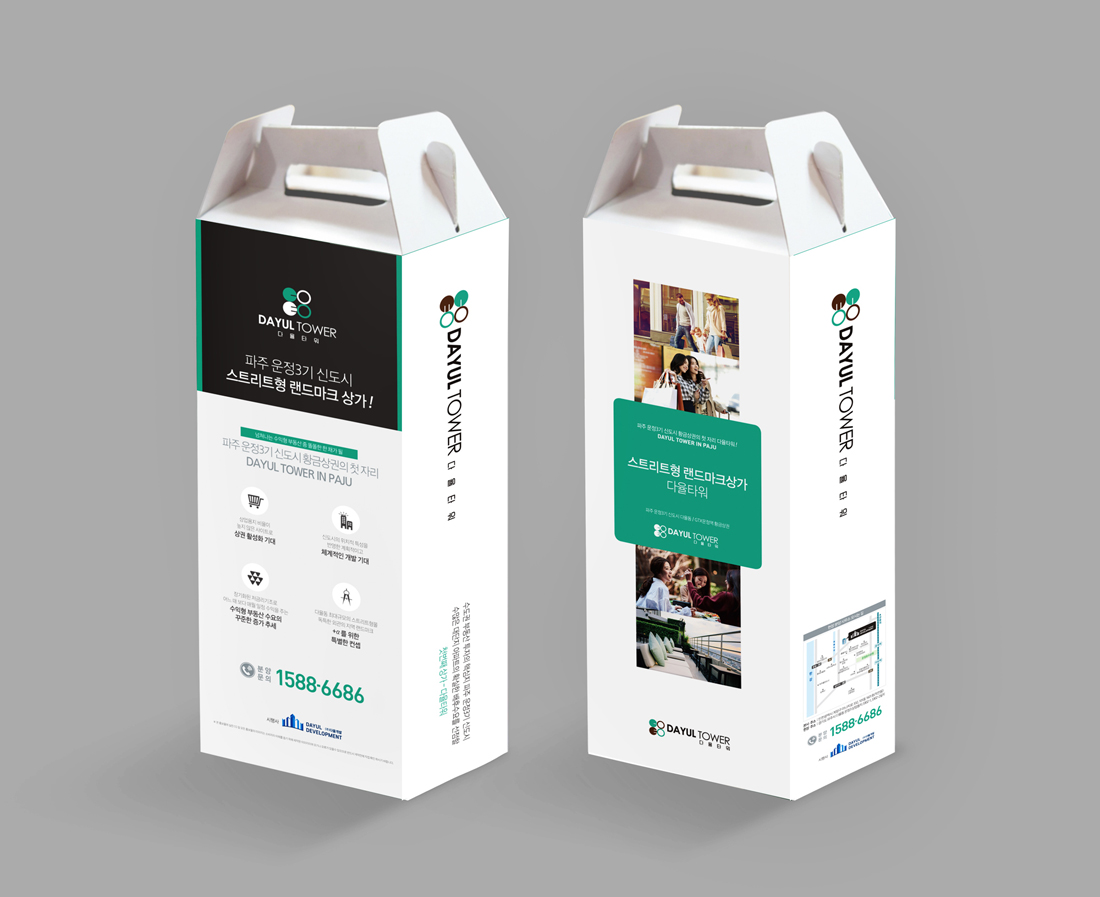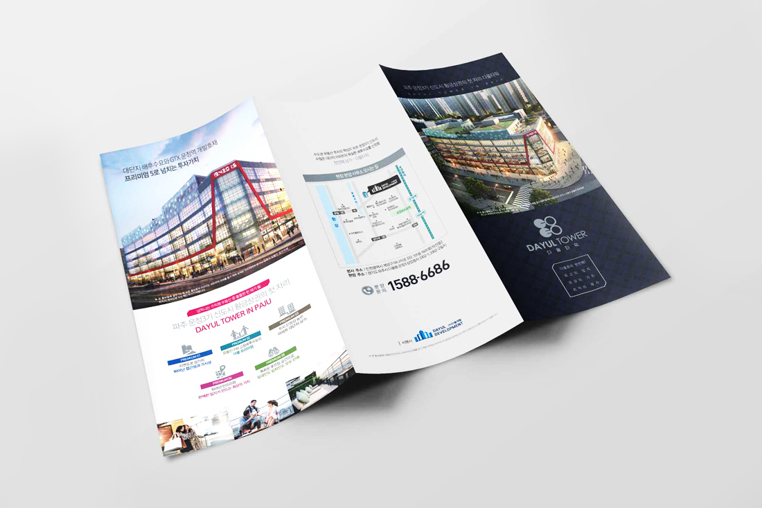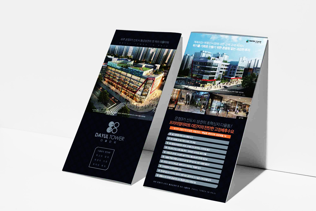 다율타워 리플렛, 전단, 공급계약서, 홀더, 종이컵박스세트, 각티슈